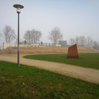 The park was completed in 2012 on the site of a former power plant after extensive cleanup work funded by the EU and Schleswig-Holstein state. This transformation turned a heavily contaminated industrial site into a public gathering place.