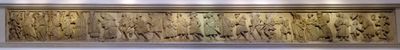 This relief survived the 1945 Dresden bombings and underwent conservation treatment before its installation in the church interior in 1991.