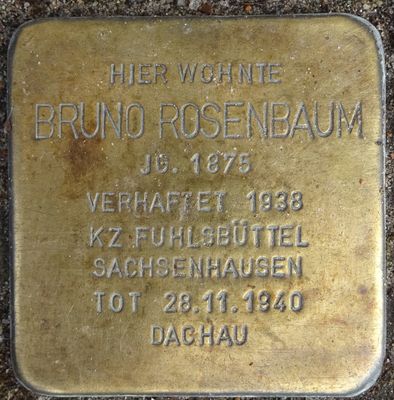 Stolperstein dedicated to Bruno Rosenbaum, Stolperstein in Hamburg-Hohenfelde