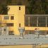 The AMCO factory extension building features a three-story steel-concrete structure with horizontal window bands and plastered wall surfaces.