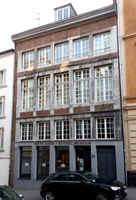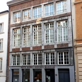 The Rote Burg stands at house number 14 on Büchel street, featuring architectural elements characteristic of North Rhine-Westphalia residential buildings.