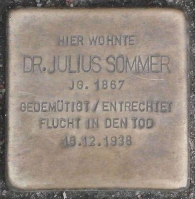Stolperstein dedicated to Julius Sommer, Stolperstein in Hamburg-Sternschanze