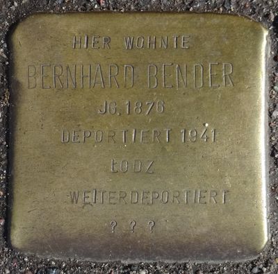 Stolperstein dedicated to Bernhard Bender, Stolperstein in Hamburg-Sternschanze