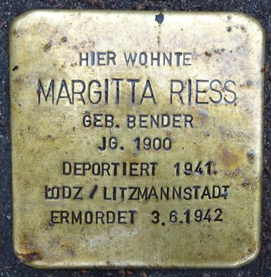 Stolperstein dedicated to Margitta Riess, Stolperstein in Hamburg-Sternschanze