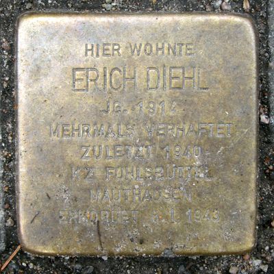 Stolperstein dedicated to Erich Diehl, Stolperstein in Hamburg-Hamm