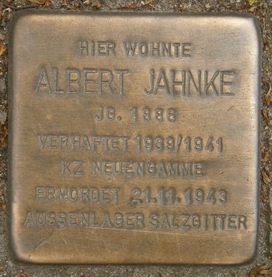 Stolperstein dedicated to Albert Jahnke, Stolperstein in Hamburg-Altona-Altstadt