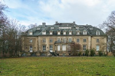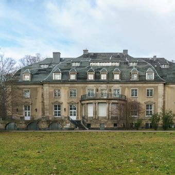 The central neo-classical mansion, known as Parkschloss Grünau, features a distinctive mansard roof and functions as an event venue.