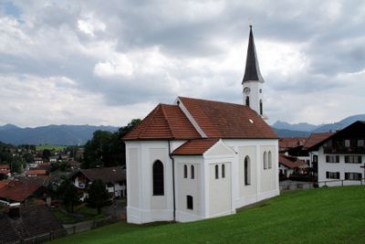 The church sits north of Saulgrub's center in a mountainous area at roughly 885 meters elevation. Access is straightforward and the building is open for regular Catholic services.