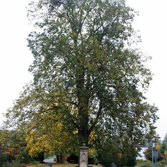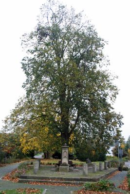 After the original linden tree fell during a storm in 1912, the current specimen was planted in 1914 and designated as a natural monument in 1936.