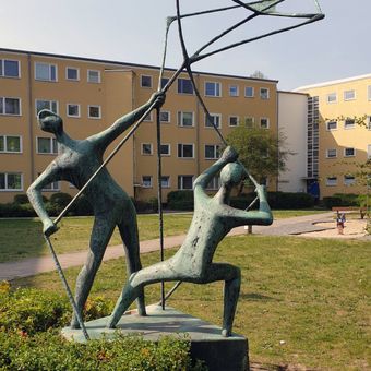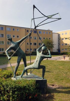 Boys with kites, sculpture by Ursula Hanke-Förster