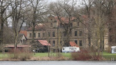 The historic Schloss Oberau, built in 1872 with Renaissance influences, now functions as a vacation center while maintaining its private Dungern family cemetery and original estate buildings.