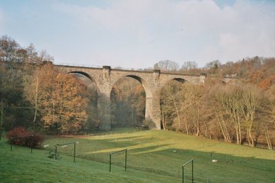The Elbschetalviadukt spans the Elbsche Valley with five stone arches, constructed entirely from Ruhr sandstone at a height of 30 meters.
