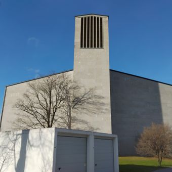 The church structure, designed by architect Oskar Wittek, represents the evolution of religious architecture in post-war Germany through its contemporary design approach.