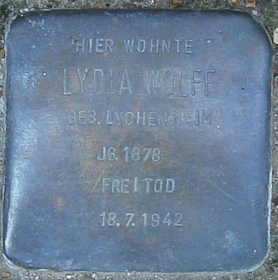 Stolperstein dedicated to Lydia Wolff, Stolperstein in Hamburg-Harvestehude