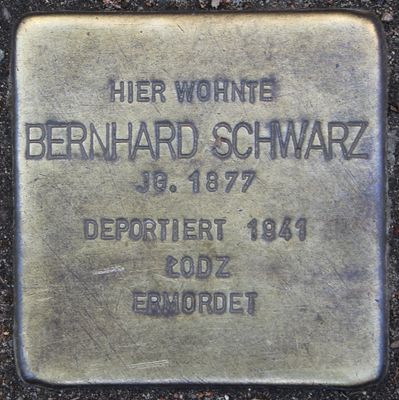 Stolperstein dedicated to Bernhard Schwarz, Stolperstein in Hamburg-Hoheluft-Ost, ehemals Hamburg-Hamm