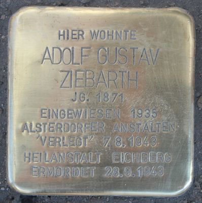 Stolperstein dedicated to Adolf Gustav Ziebarth, Stolperstein in Hamburg-Sternschanze
