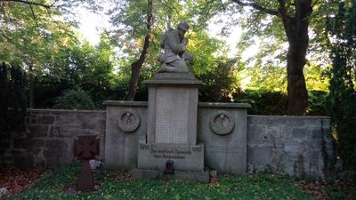 Kriegerdenkmal, Kriegerdenkmal in Lauda bei Lauda-Königshofen für den Ersten Weltkrieg auf dem alten Friedhof bei der Marienkirche an einer der Umfassungsmauern