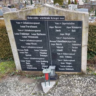 Kriegerdenkmal, Kriegerdenkmal in Tauberbischofsheim für Opfer des Deutschen Kriegs 1866 als Gedenkplatte mit daran angebrachter Marmortafel