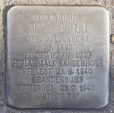 Stolperstein dedicated to Alice Berju, Stolperstein in Hamburg-Eppendorf
