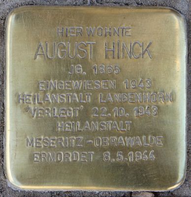 Stolperstein dedicated to August Hinck, Stolperstein in Hamburg-Altona-Nord