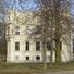 The manor house features a nine-axis plastered construction with a shallow hipped roof concealed by a battlement crown on the eastern side.