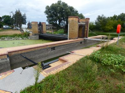 Kahnschleuse Gahlberg, Schleusenbauwerk im Fluss Rhin im Westen des Landes Brandenburg in der Gemeinde Havelaue
