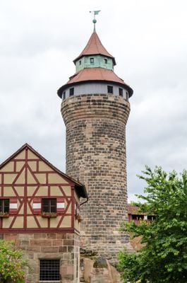 Sinwell Tower, Cylindrical stone tower at Imperial Castle, Nuremberg, Germany.