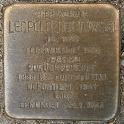 Stolperstein dedicated to Leopold Drutowski, Stolperstein in Hamburg-Eimsbüttel