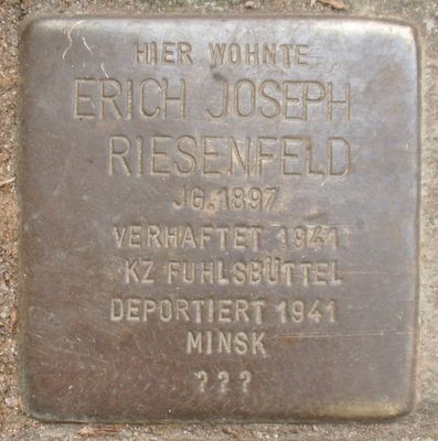 Stolperstein dedicated to Erich Joseph Riesenfeld, Stolperstein in Hamburg-Harvestehude