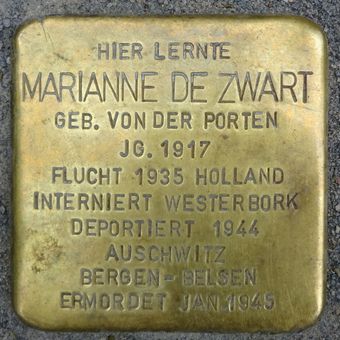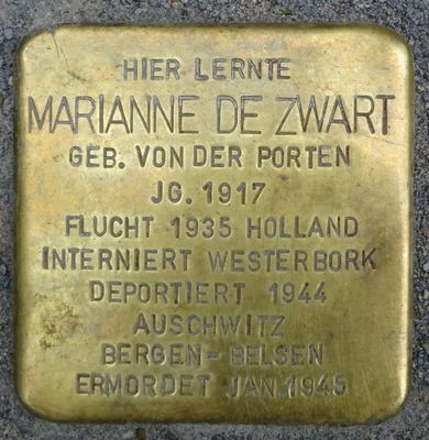 Stolperstein dedicated to Marianne de Zwart, Stolperstein in Hamburg-Harvestehude
