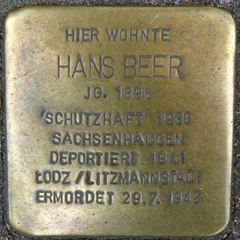 Stolperstein dedicated to Hans Beer, Stolperstein in Hamburg-Harvestehude