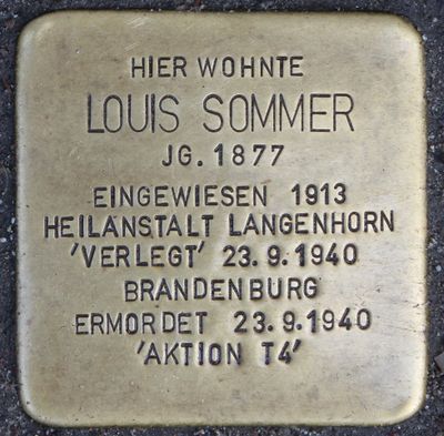 Stolperstein dedicated to Louis Sommer, Stolperstein in Hamburg-Rotherbaum