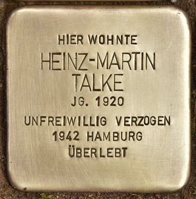 Stolperstein dedicated to Heinz-Martin Talke, Stolperstein in Reinbek