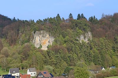 The Munterley rises 100 meters above the Kyll Valley floor, forming part of the Gerolstein Dolomites with steep vertical rock walls.