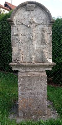 Kriegerdenkmal, Kriegerdenkmal für den Bauernkrieg in Gerlachsheim. Das eingeschlagene Datum ist falsch. Die Schlacht fand zwei Tage früher statt. Auch sind die Opfer wahrscheinlich hier nicht begraben worden
