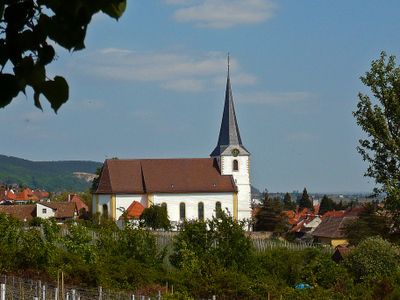 Visitors can locate the church at coordinates 49.334859 latitude and 8.129639 longitude, with dedicated parking spaces available near the entrance.