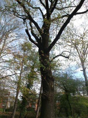 Naturdenkmal [[Eichen|Eiche]]-[[Stieleiche]] (''Quercus robur'') Franz‑Mehring‑Straße, Anfang Goethepark, am Zulauf zum Teich in Cottbus-Mitte
