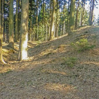 The remnants of walls and moat structures stand as evidence of a former fortification system on elevated ground near Georgsmarienhütte.