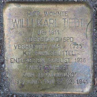 Stolperstein dedicated to Willi Karl Tiedt, Stolperstein in Hamburg-Eimsbüttel