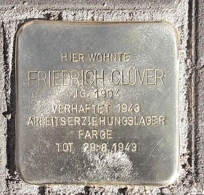 Stolperstein dedicated to Friedrich Clüver, Stolperstein in Bremen-Hemelingen
