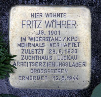 Stolperstein dedicated to Fritz Wöhrer, Stolperstein in Berlin-Niederschönhausen, Germany