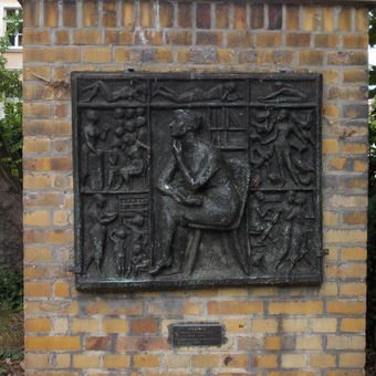 Studierende Arbeiterin, relief by Ingeborg Hunzinger in the Plastik-Park Leuna in Germany