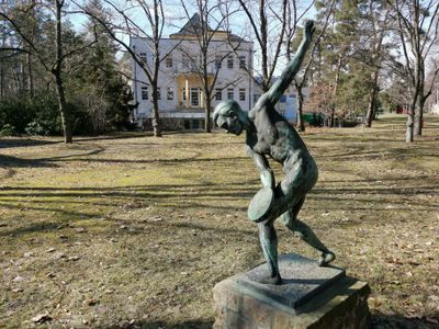 Diskuswerfer in Heilstätte Lindenhof, Plastik in Coswig, Sachsen