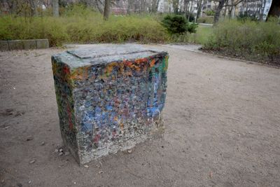 Erbaut in den Jahren der Not, memorial stone in the Carl-von-Ossietzky-Park in Berlin, Germany