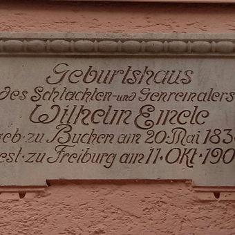 Wilhelm-Emelé-Gedenktafel, Eine an Wilhelm Emelé erinnernde Gedenktafel an seinem Geburtshaus in Buchen
