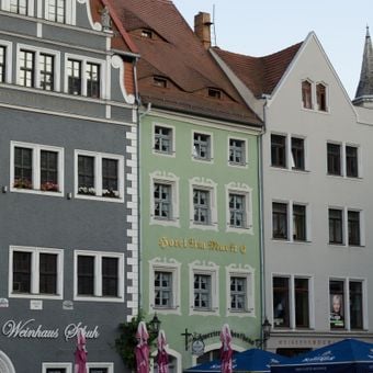 Located directly on Market Square, the building now functions as a hotel establishment while maintaining its architectural heritage through preserved historical elements.