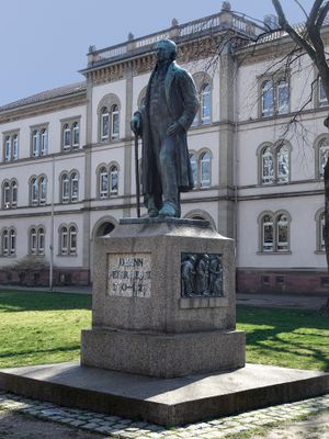 A tall bronze figure of the poet Johann Peter Hebel rises on a stone pedestal and recalls the writer who was born in the region and composed his works in Alemannic dialect. Walkers often pause before the monument, which sculptor Wilhelm Gerstel created in 1909, while families spread out on the lawn around the sculpture.