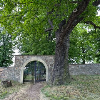 Sachgesamtheit Friedhof Gnandstein, mit den Einzeldenkmalen: Leichenhalle und Friedhofstor (siehe Einzeldenkmalliste - Obj. 08970759) sowie mit dem Sachgesamtheitsteil: Einfriedungsmauer sowie gärtnerisch gestaltete Friedhofsanlage (Gartendenkmal)