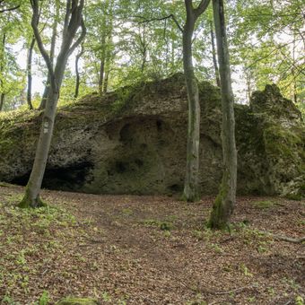 Dolomitfels mit Höhle Alter Keller W von Neudorf, Geotop in Landkreis Bayreuth in Bavaria, Germany