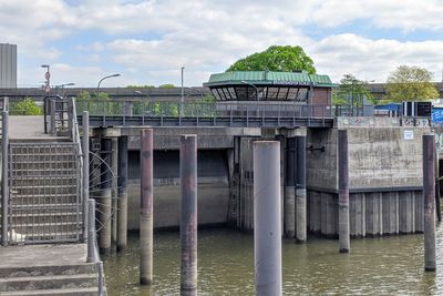 The Brandshofer Schleuse regulates water levels between the Bille River and Elbe River, enabling safe passage for vessels through Hamburg's waterway network.